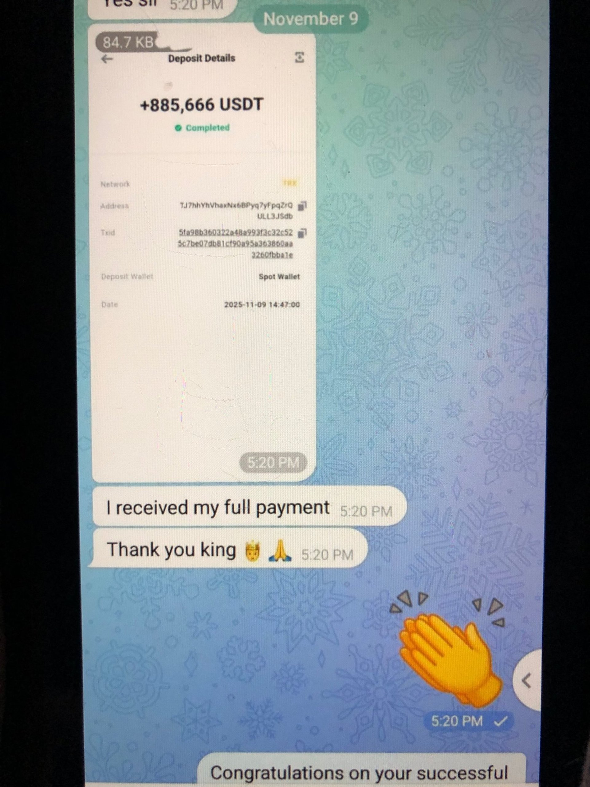 Ensure all information is correct and the sending address is included as this is how we will verify and deliver profits.
